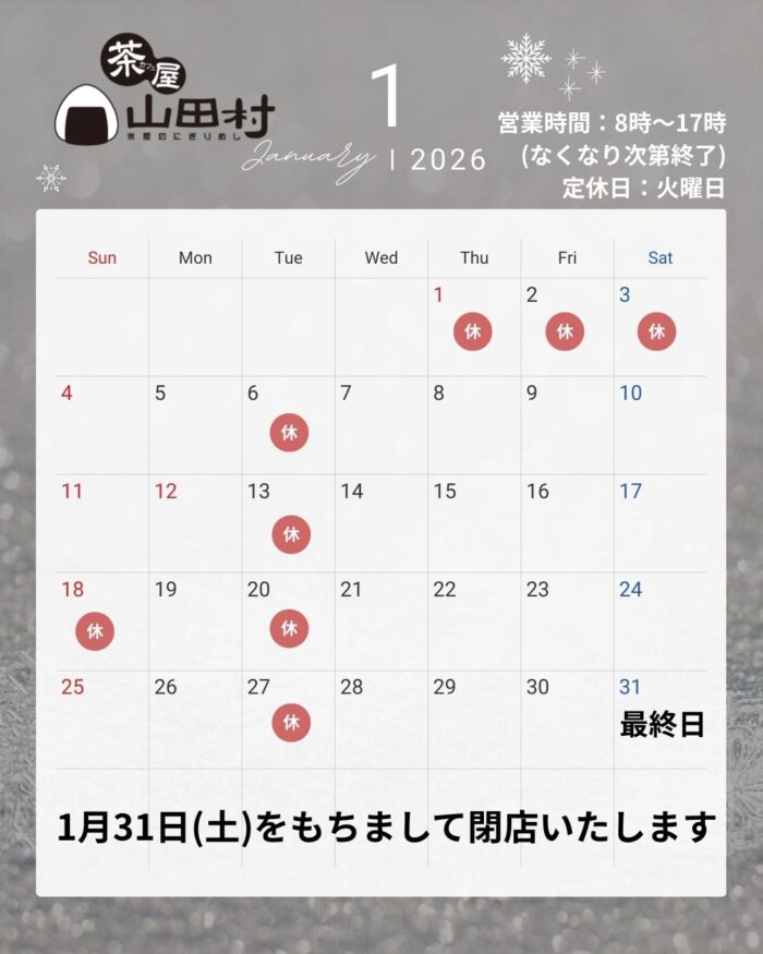 閉店まで残りわずかな期間ではございますが、美味しいおにぎりをご提供できるようスタッフ一同努めて参ります。